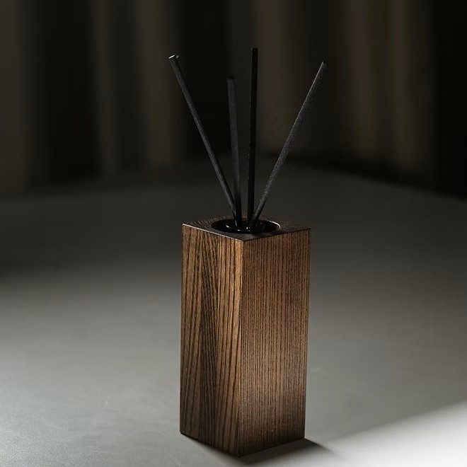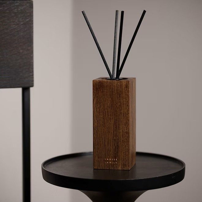 Í pakkanum er að vinna veglegan viðarkubb úr aski, ásamt ilmglasi og fjórar stöngum til að setja í það. Til að fá ákafari ilm, dragið stangirnar út og snúið þeim við og setjið þær svo aftur í krukkuna.