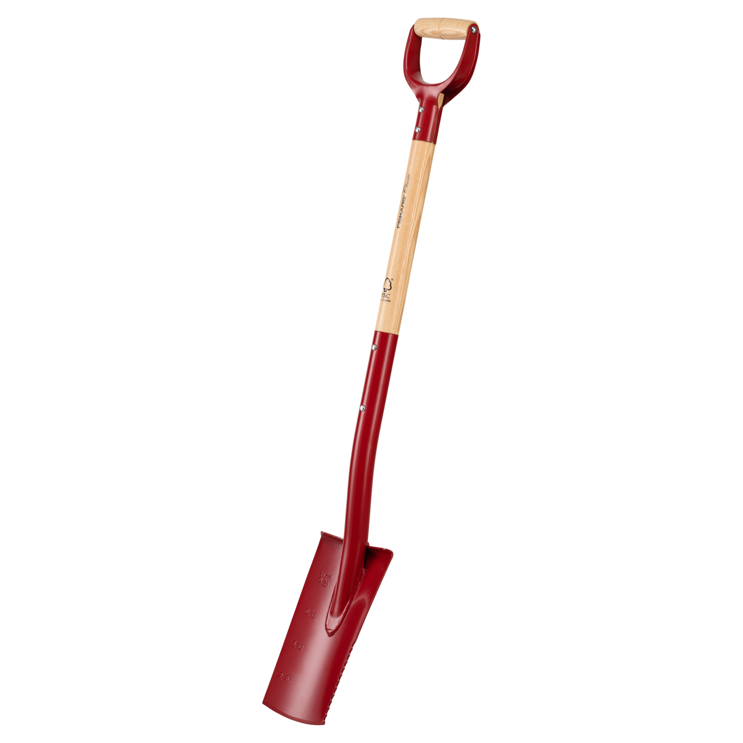 - Mælistika á skóflublaði til að auðvelda notanda að gera gróðursetningarholur að ákveðinni dýpt